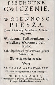 | 19:20, 25 lis 2015 | Almanach-Piechotne cwiczenia albo wojennosc pisza-Strona03.jpeg (plik) | 281 KB | Sauron | == Opis == {{Grafika | Opis = Ilustracja przedstawiająca szyk mieszany muszkieterów i pikinierów | Data = 1660 | Wiek = XVII | Autor = Błażej Lipowski | Dzieło = "PIECHOTNE ĆWICZEN... | 1 | |